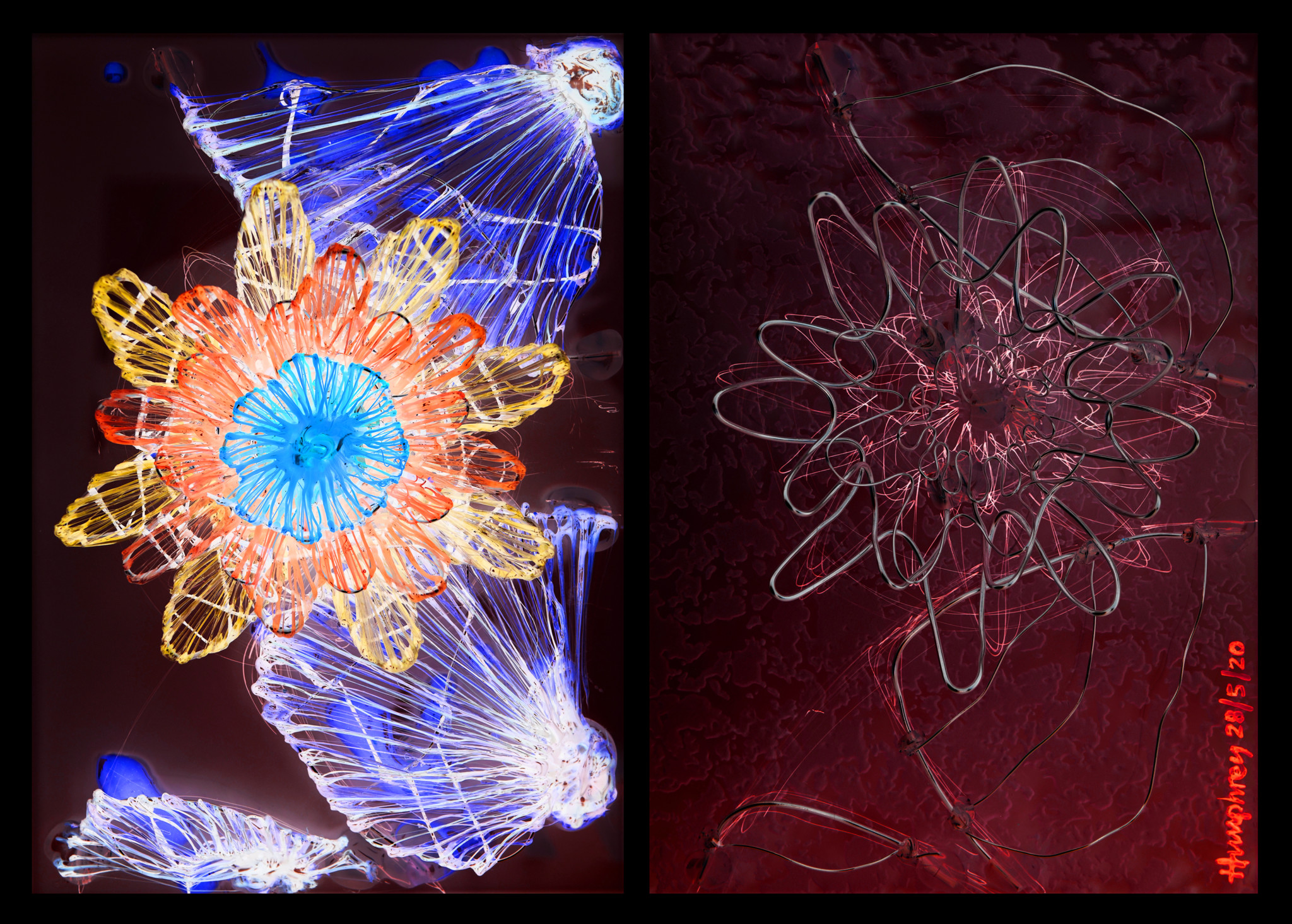 “THIS WORK IS ABOUT APPROACHING FLORA AND FAUNA BY FUSING BOTANY AND ANATOMY IN A SINGLE ‘FLOWER ON THE BONE’ METHOD. THIS PHYSICAL FLOWERING HEAD IS INVERTED INTO A DIGITAL VIBRANT EXPRESSION THAT EXPLORES THE CHANGING COLOURS OF OUR CURRENT CLIMATIC CONDITIONS AND POTENTIALLY DESTRUCTIVE LANDSCAPES. THIS IDEA IS SIMILAR IN LIFE WITH THE EXPLODING ELATION OF WINNING AND DESPAIRING LONELINESS OF LOOSING.”