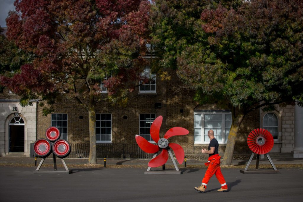 British Army tank wheels, Royal Navy propeller, Royal Air Force turbine fan, carbon steel and enamel paint