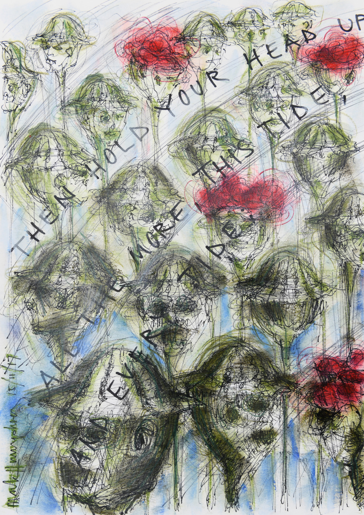 Flower structures reflecting facial expressions related to WW1 centenary commemorations